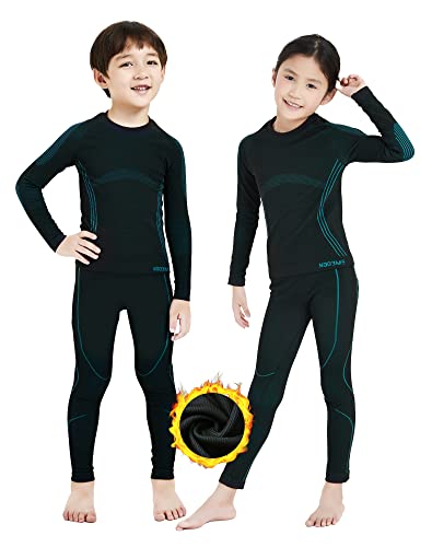 NOOYME Funktionella underkläder barn skidunderkläder barn termiska underkläder barn andas och hudvänliga sportunderkläder barn fotboll, Varm-ljusblå, (110/116) 110-115cm