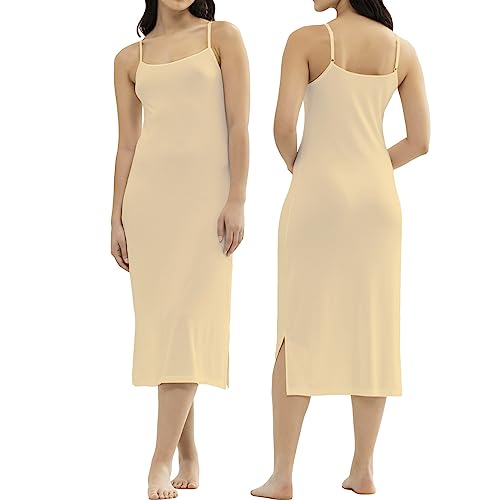 BestSale247 Sexig underklänning för kvinnor med justerbara remmar underkjolar nattlinne, Beige lång, XXL-3XL