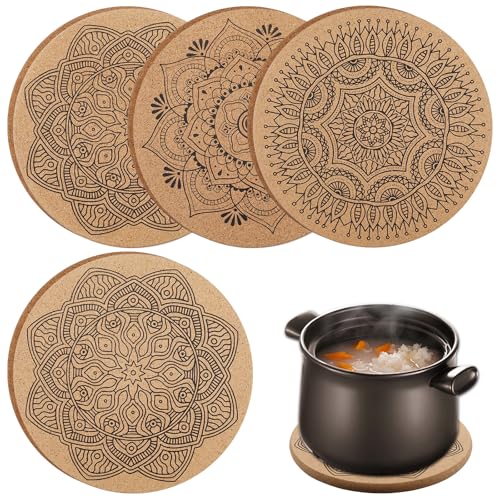 4 stycken kastrullunderlägg av kork, 19 cm diameter runda korkunderlägg, runda underlägg, värmebeständigt underlägg, halkfri kruka bordsskydd underlag för krukor glas skålar vaser