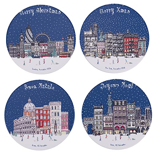Set 4 Keramiska underlägg, värmeisolerande kork botten, XMas in the City