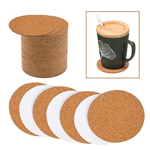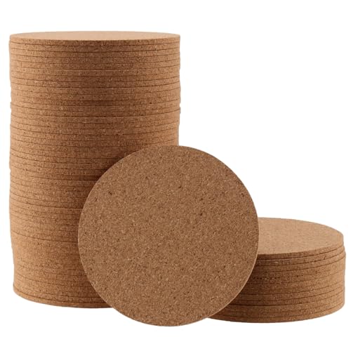 NAMYEUT Uppsättning av 50 underlägg kork, 10 cm Dm 3 mm tjocka runda korkunderlägg bordsunderlägg glas trä för drycker kaffe te, perfekt för hem, kontor, bar och restaurang