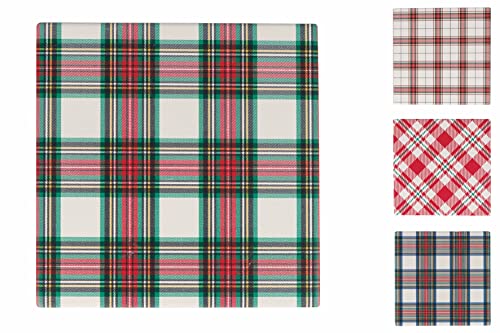 Tartan Set 4 Kvadratiska underlägg i keramik, kork botten 10 x 10 cm