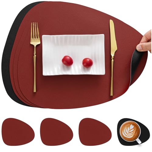 Myir JUN Bordsmattor och underlägg i läder, bordstablett vattentäta dubbelsidiga köksmattor, kaffemattor, halkfria tvättbara bordstabletter och underlägg (4-pack, röd/svart)