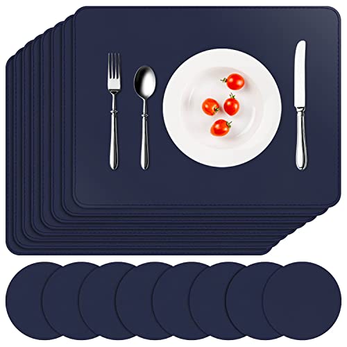 smøla 8-delat bordsset av PU-läder – inkl. underlägg I bordsunderlägg tvättbar I bordsunderlägg set i läderutseende I underlägg för tallrikar glas I bordsunderlägg bordsdekoration (blå/silver)