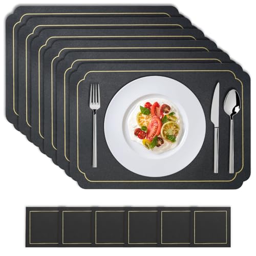 APLKER Bordstabletter och underlägg uppsättning med 6, värmeisolering PU-läder bordsmattor vattentäta tvättbara matplatsmattor för kök inomhus utomhus fest – svart