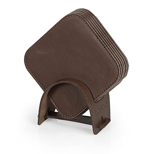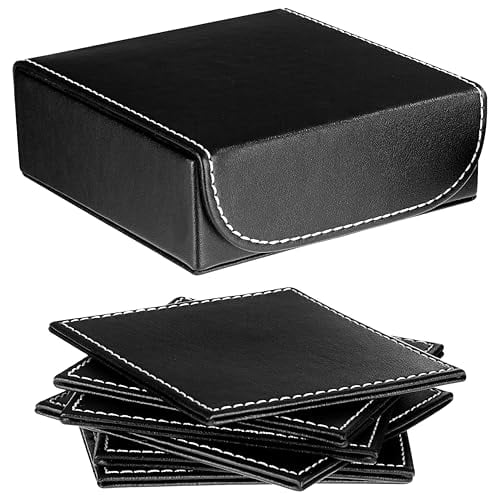Premier Housewares 8828010 fyrkantiga underlägg med hållare 6 delar, falskt läder, svart