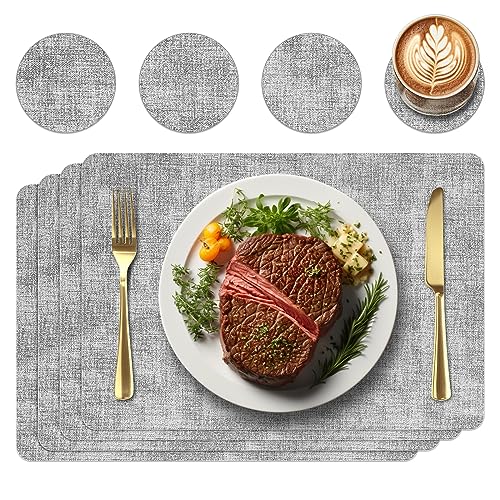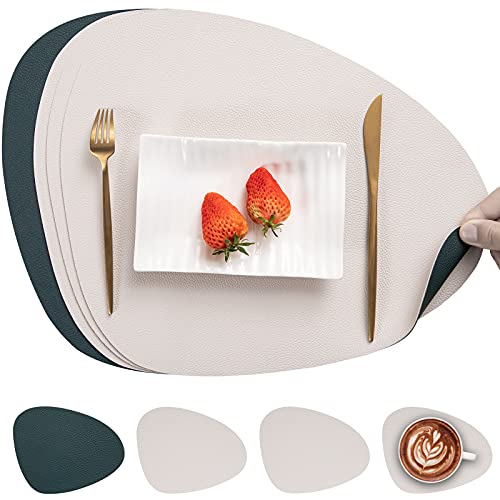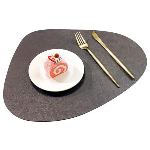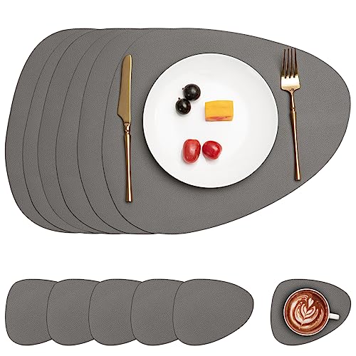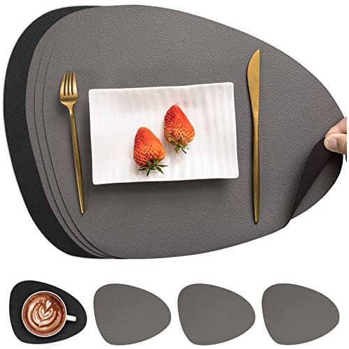 WAKOSAN Bordstabletter och underlägg av läder, tvättbara bordstabletter, bordsdekoration, bordsset tvättbara runda, bordstabletter för kök, matbord, set om 4 (oval, grå)