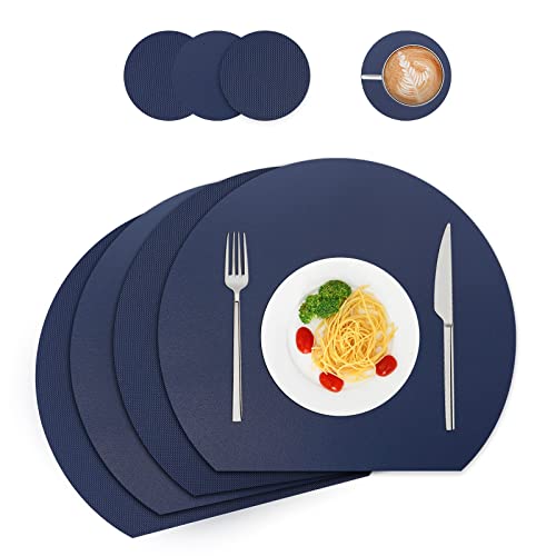 WAKOSAN Bordstabletter och underlägg av läder, tvättbara bordstabletter, bordsdekoration, bordsset tvättbara runda, bordstabletter för kök, matbord, set om 4 (halvcirkel, blå)