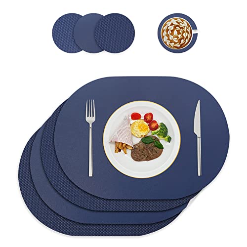 WAKOSAN Bordstabletter och underlägg av läder, bordsdekoration, bordsunderlägg avtorkningsbar, PU-läder värmebeständiga bordstabletter för kök matbord, set om 4 (oval, blå)