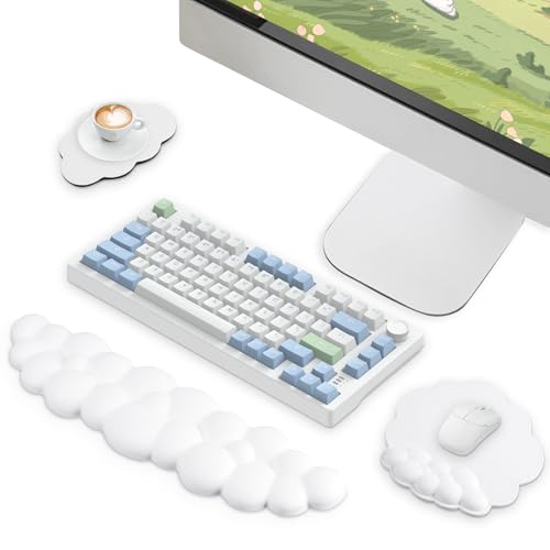 Votoko handledsstöd, vit, ergonomiskt moln handstöd tangentbord med PU-läder minnesskum, handledsrest musmatta, underlägg, 3-i-1 musmatta set för spel/hem/kontor