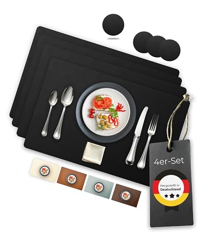 Läderfabrik Garnier ® Bordstabletter och underlägg, set om 4, tvättbar, äkta återvunnet läder, bordsset bordstabletter, stabil och halkfri läderlook 45 x 30 cm, hållbar tillverkad i Tyskland (svart)
