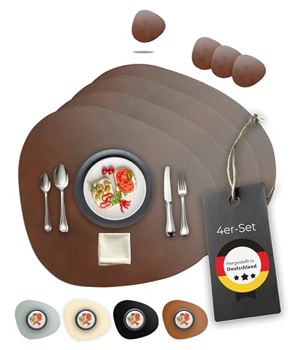 Läderfabrik Garnier ® bordstabletter och underlägg set om 4, tvättbar, äkta återvunnet läder, bordsset bordstabletter, stabil och halkfri, modern, 39 x 35 cm, hållbar, tillverkad i Tyskland (brun)