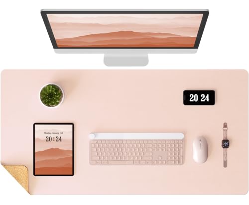 Aothia skrivbordsunderlägg i kork – dubbelsidigt underlägg med naturlig kork & PU-läder, musmatta/skrivbordsskydd, lätt att rengöra, vattentätt för kontor/hem (Rosa balett, 96 x 43 cm)