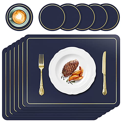 APLKER Bordstabletter och underlägg set med 6, PU-läder värmebeständiga tvättbara halkfria vattentäta bordsmattor för kök matbord heminredning 40 x 30 cm (marinblå)