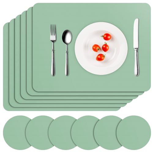 APLKER Bordstabletter och underlägg, set med 6, värmeisolering PU-läder bordsmattor vattentäta tvättbara matplatsmattor för kök inomhus utomhus fest – salladsgrön