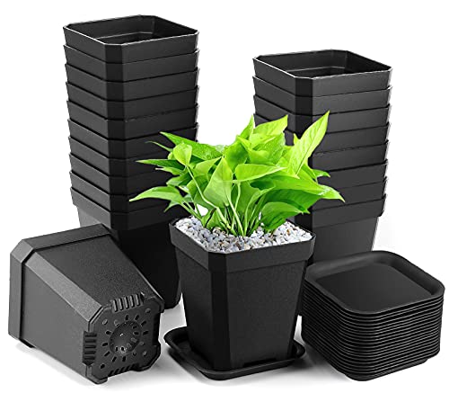 Yilyln Odlingskrukor 7 x 7 x 8 cm, 20 stycken planteringskrukor med underlägg, förtjockade blomkrukor fyrkantig kruka plast fyrkantiga krukor, fyrkantiga frökrukor (20, 7 x 7 x 8) svart