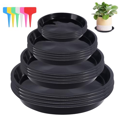 HFDONGL 16 stycken blomkrukor underlägg plast växter underlägg blomkruka blomunderlägg rund med 18 stycken etiketter växtunderlägg runda blommor underlägg för inomhus- och utomhusväxter
