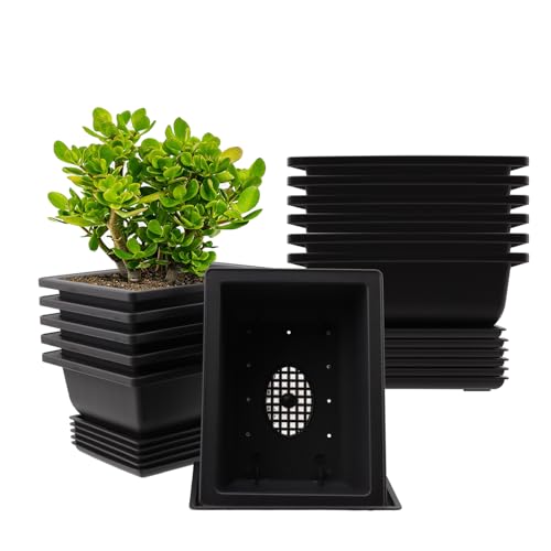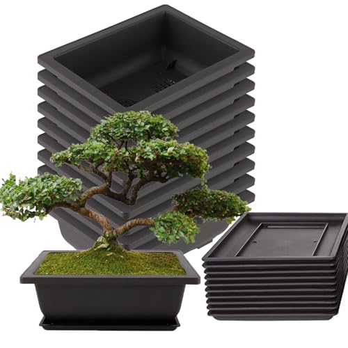 NAMYEUT 10 stycken bonsai träningskrukor 23 x 17 cm, bonsai krukor med underlägg, plast blomkruka bonsai skål plast bonsai blomkruka för vardagsrum kontor gård trädgård