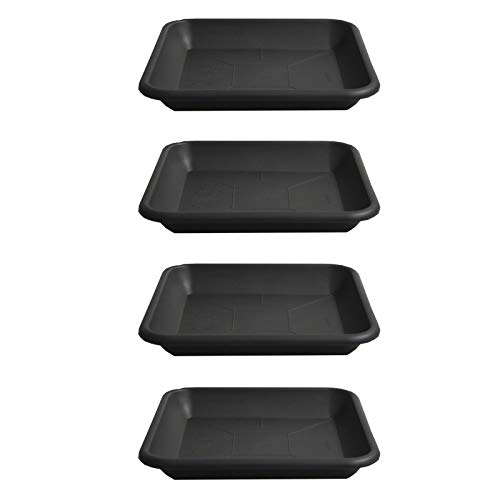 HAC24 set om 4 blomkrukor underlägg fyrkantig rund blomkruka blomkruka skål plast planteringslåda växtskål antracit (kantig 28 x 28 cm)