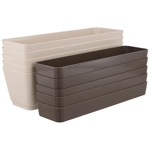 SINJEUN 5 stycken blomlådor med underlägg, 30,5 x 9,7 x 8,5 cm blomkruka rektangulär plast, balkonglåda, blomkrukor, planteringskruka för trädgård, fönsterbräda, balkong