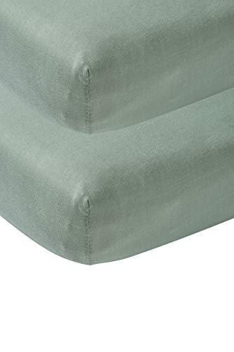 Meyco Baby Uni underlakan 2-pack till spjälsängen (underlakan med mjuk jerseykvalitet, tillverkad av 100% bomull, perfekt passform tack vare elastisk dragsko runt om, mått: 70 x 140 cm), stengrön