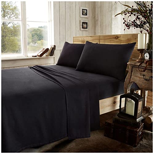 Underlakan för enkelsängslakan, lakan i borstad bomull, enfärgade sängkläder och linne, svart