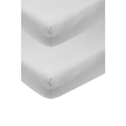 Meyco Baby Uni underlakan 2-pack för vaggan (lakan med mjuk jerseykvalitet, tillverkad av 100% bomull, perfekt passform tack vare resår runt om, mått: 40 x 80 / 90cm), ljusgrå
