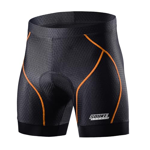 Souke Sports Herr Cykling Underkläder 4D Vadderad Andningsbar Cykel Undershorts Halkfri Design (Svart/Orange, L)