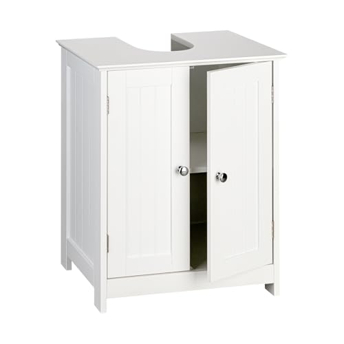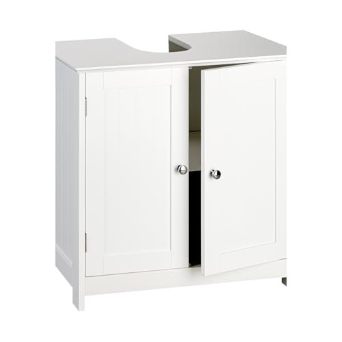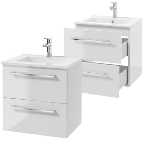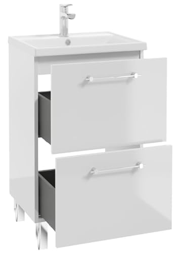 VBChome Badrumsmöbler, vit, 50 cm, handfat med underskåp, tvättställsunderskåp, badrumsskåp, 2 dörrar, glans, tvättutrymme, stående, möbler