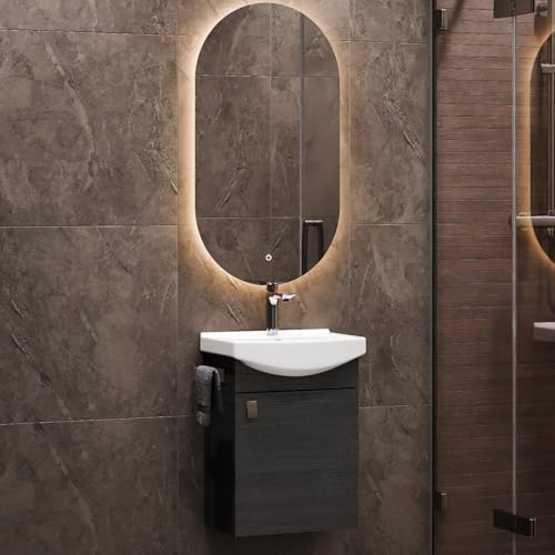 Planetmöbel badrumsmöbel set tvättställ med underskåp 45 x 60 x 33 cm, spegel med belysning 50 x 90 cm för badrum & gästtoalett, antracit