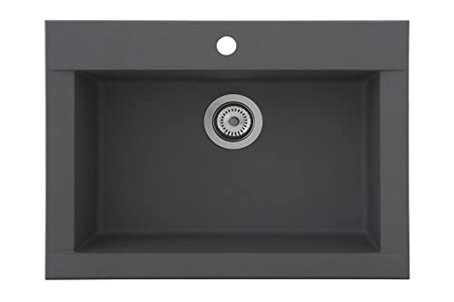 Respekta Ohio mineraldiskbänk i grå/1 handfat inbyggd diskbänk i 66 x 50 cm/diskbänk lämplig för underskåp från 60 cm bredd