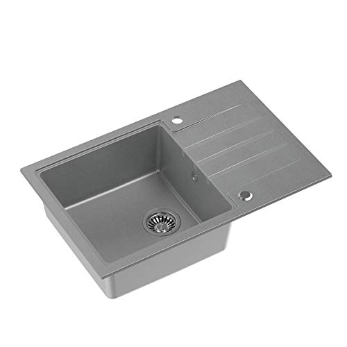 VBChome Diskbänk 78 x 50 cm djup diskbänk 20 cm grått kök stor dräneringsbräda inbyggd diskbänk underskåp från 55 cm kompositdiskbänk enkelhandfat + sifon