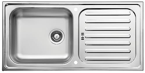 Respekta Riverside rostfri diskbänk / 1 skål inbyggnadsdiskbänk i 100 x 50 cm/rostfri diskbänk med avrinningslåda lämplig för underskåp från 60 cm bredd