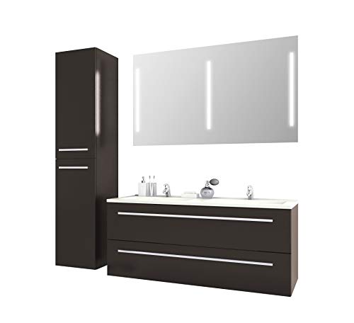 Sieper I badrumsmöbler set Libato, dubbelt tvättställ med underskåp 120 x 50 cm, högt skåp och badrumsspegel I antracit