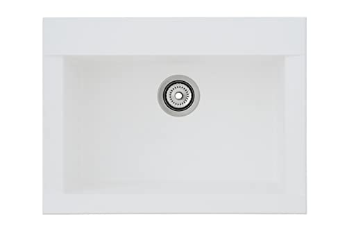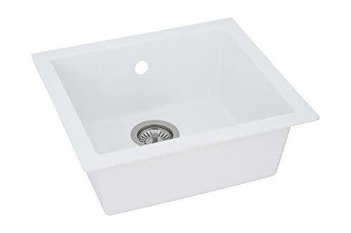 Respekta Ohio mineraldiskbänk i vitt/1 handfat inbyggd diskbänk i 50 x 44 cm/diskbänk lämplig för underskåp från 50 cm bredd