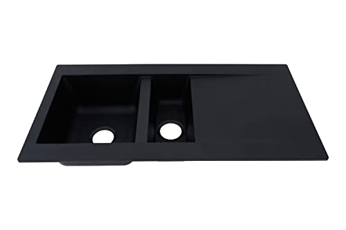 Respekta Denver Mineralite-kompositdiskbänk i svart/1 handfat inbyggd diskbänk i 100 x 50 cm/diskbänk lämplig för underskåp från 60 cm bredd