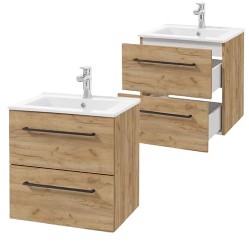 Deftrans Domodomo badrumsskåp med tvättställ, 50 x 50 x 46,5 cm, ek-underskåp för tvättställ, väggskåp för badrum – set med keramiskt handfat
