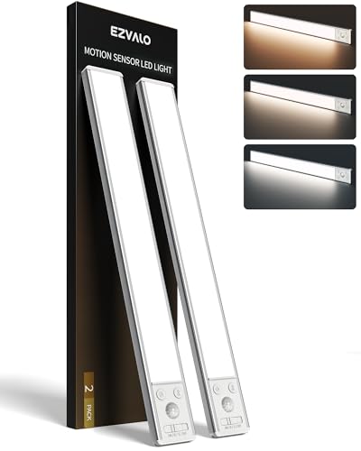 EZVALO Underskåp Belysning,Uppladdningsbar Rörelsesensor Lampor Inomhus, 5 Nivåer Dimbara Magnetiska Garderobslampor, Trådlös Under Disken Lampor För Kök, Trappor (Silver, 37cm)