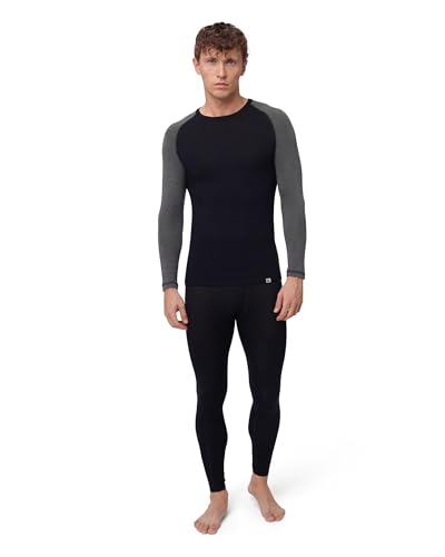 DANISH ENDURANCE Underställ i merinoull för män, Långkalsonger Herr, Vinter, Varm, Svart/Mörkgrå, L