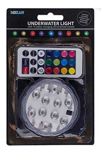 Ut ur den blå 260110 LED undervattensbelysning med färgändring, lampans diameter ca 7 cm med fjärrkontroll
