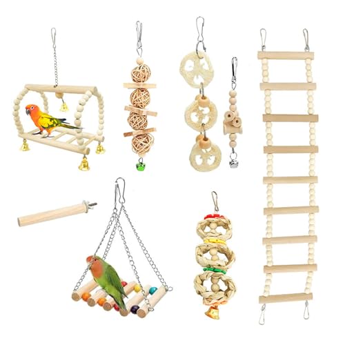 Jortmrd 8-deligt fågelspel, undulatleksak, papegojgunga, trästege för fåglar, burutrustning i trä, fågelgungor med klockor och tuggleksaker för undulater och små husdjur