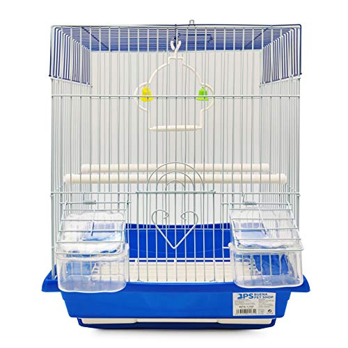 BPS Fågelbur för undulater, kanariefågel, med matskål, vattenflaska, hoppkrok, sittstång för vila, slumpmässigt färgval, 30 x 23 x 39 cm, BPS-1185