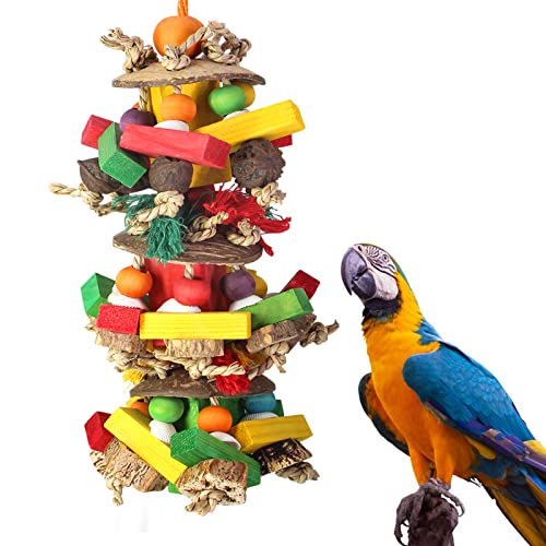 Papegoja leksaker undulatleksaker och tillbehör, fågeltuggleksaker med naturlig nött, nymfkakadua leksaker hängande bur färgglada träklossar för undulater afrikansk grå Amazon mini ara stor medium