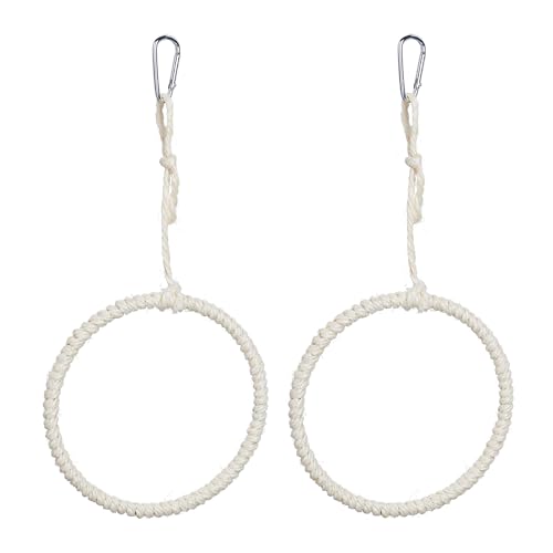 Relaxdays Fågelgungring, set med 2, klätterleksak, 15 cm, undulater och papegoja, burtillbehör, karbinhake att hänga upp, naturlig, växtfiber, 34 x 15 x 1 cm