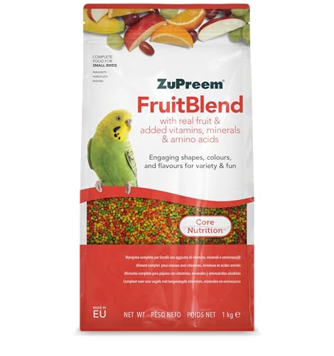 Zupreem Multifruktfoder för sällskapsfåglar - frukt och vitaminer - fågelfoder lämpligt för undulater, australiensiska parakiter, små papegojor och andra små fåglar - 1 kg