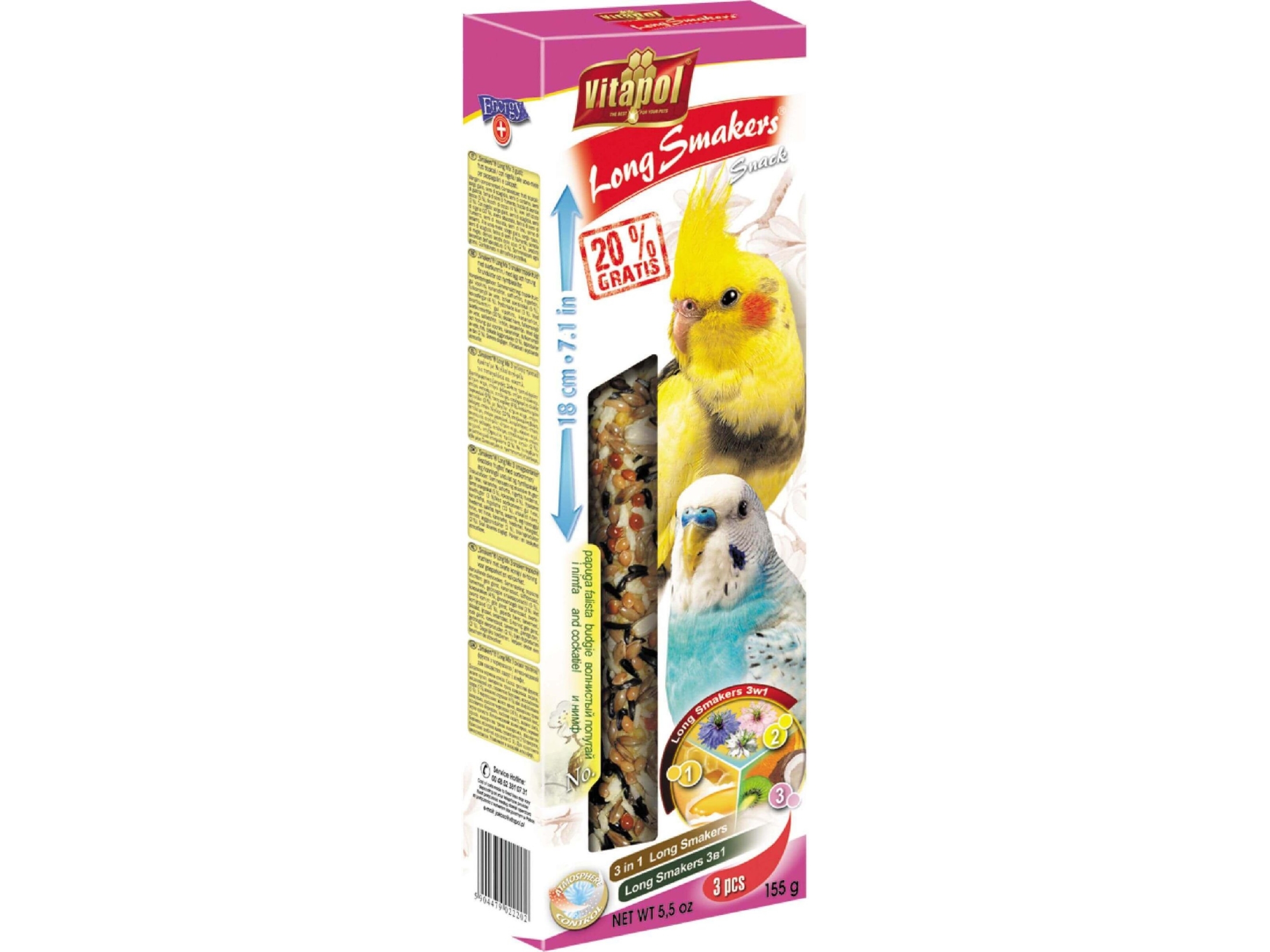 Vitapol Smakers Long Mix 3 Smaker Tropisk Frukt/Svarta Vinbär/Ägg Och Honung För Undulater Och Nymfer