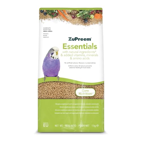 Zupreem Essentials mat för sällskapsfåglar – naturliga ingredienser – fågelfoder, lämplig för undulater, australiensiska parakiter, papegojor och andra små fåglar – 1 kg