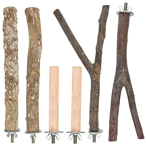 6 st fågelabborre stativset, fågelbur papegoja leksaker naturlig trägren stående pinne plattform lekplats för små medelstora undulater kärlek aror finkar nymfparakit conure bur tillbehör, 3 typer