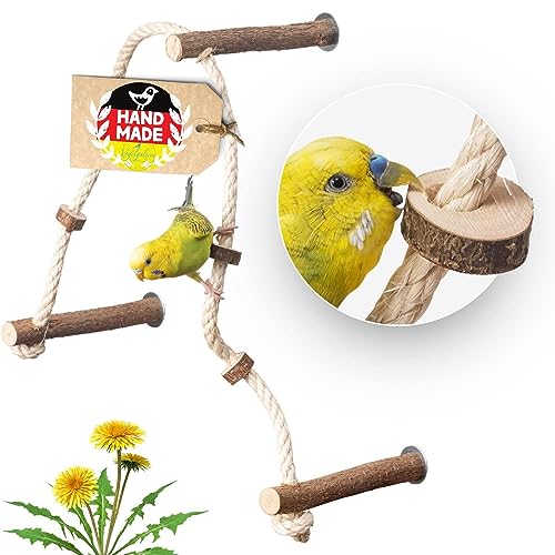 Sittpinne eller klätterrep med 3 läckra, glidande sittpinnar i naturligt trä för undulater, cockatilar & co. för fågelburar fågelleksaker