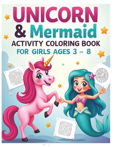 Unicorn & Mermaid Activity Coloring Book for Girls 3-9: Fun Unicorn & Mermaid Puzzles, Coloring, and Games for Kids